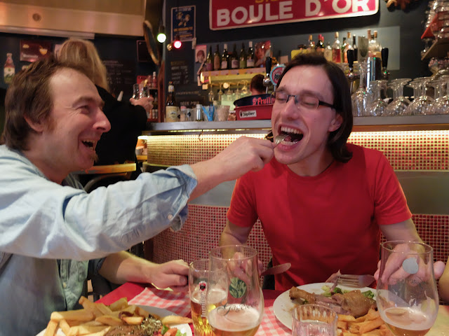 着いた日の夜は、近所の食堂 LA BOULE D'ORでニコラ、ミクちゃん家族、ミクちゃんの友人のサチコさんらと夕食を囲みました。